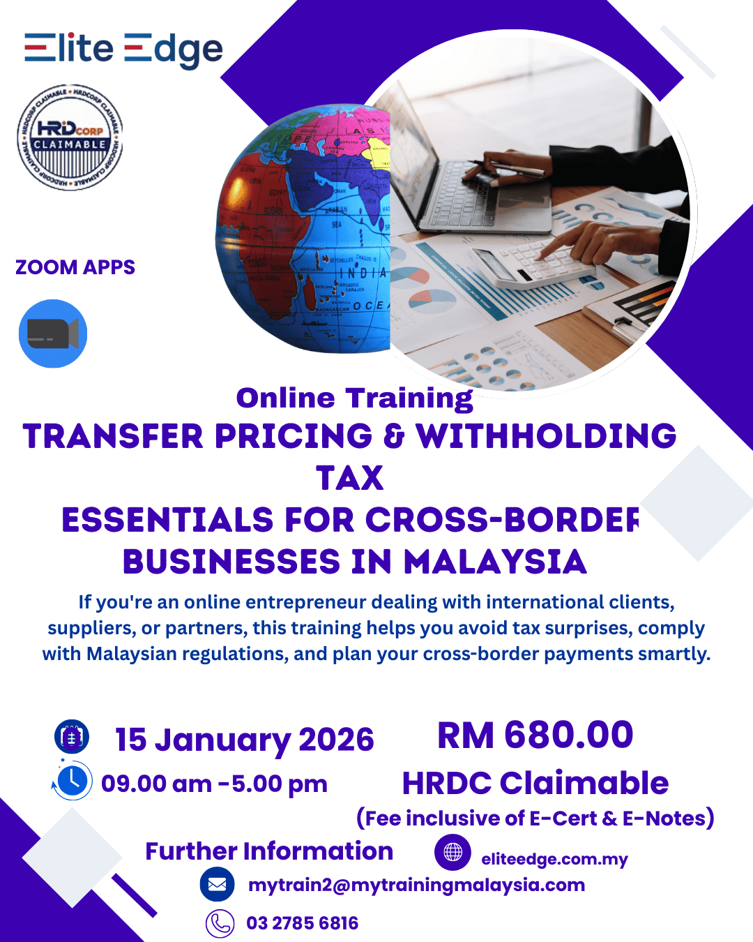 This training program is designed to equip tax managers, finance professionals, accountants, and business owners with the practical skills and up-to-date knowledge needed to navigate TP and WHT requirements in the China–Malaysia business context. Through real-life case studies, regulatory updates, and best-practice compliance strategies, participants will gain the confidence to manage cross-border transactions effectively, reduce tax exposure, and safeguard their organisation against costly disputes with the tax authorities.